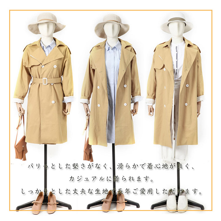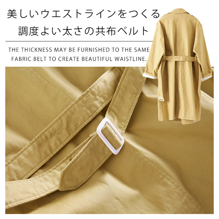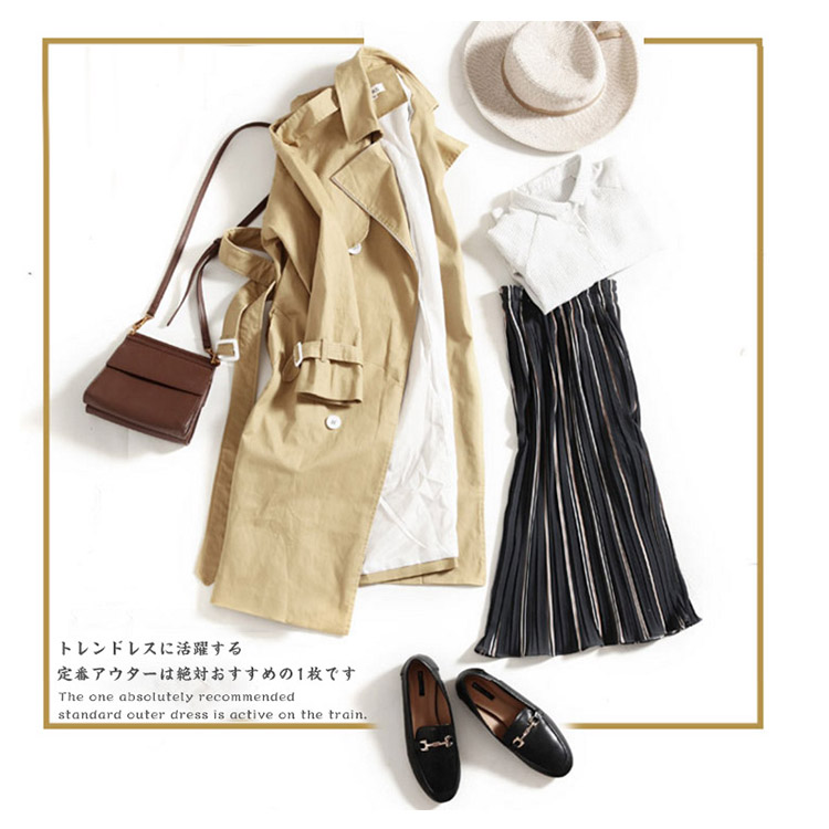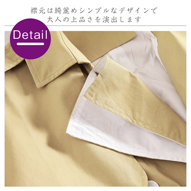 | シンプルな中にもトラッドなムード感を感じさせるトレンチコートです。スカートやパンツとのバランスが取りやすく、全体的にコンパクトにまとまるので、理想の美バランスが完成!トレンドレスに活躍する定番アウターは絶対おすすめの1枚です。 | |