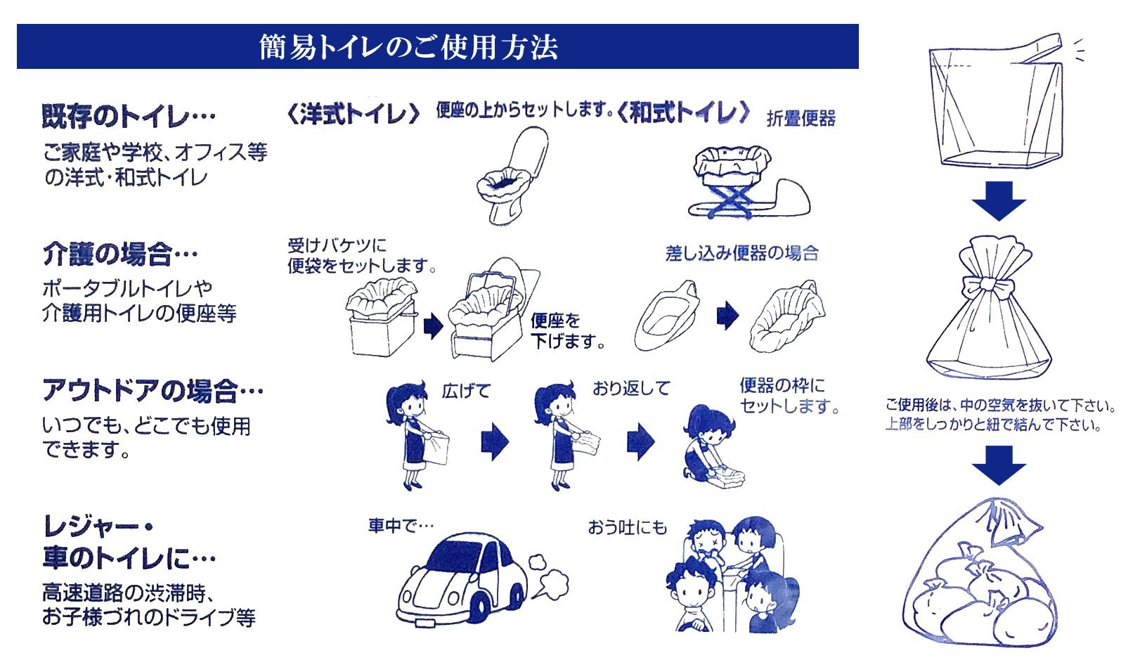 * Bags and polymer sheets are included in each 20 pieces * Just set in the toilet at the time of water cut off!