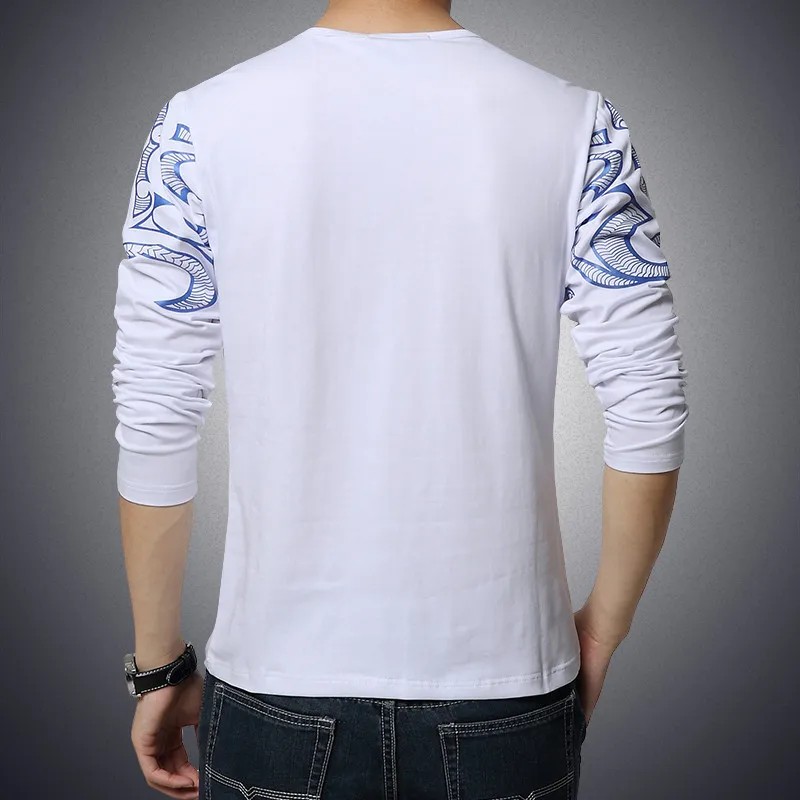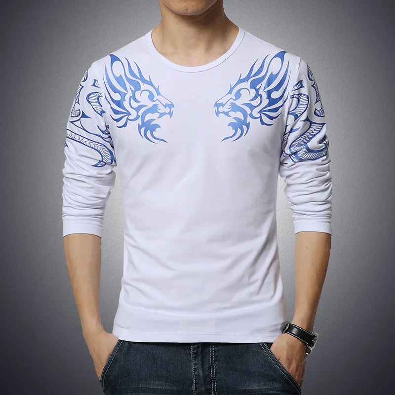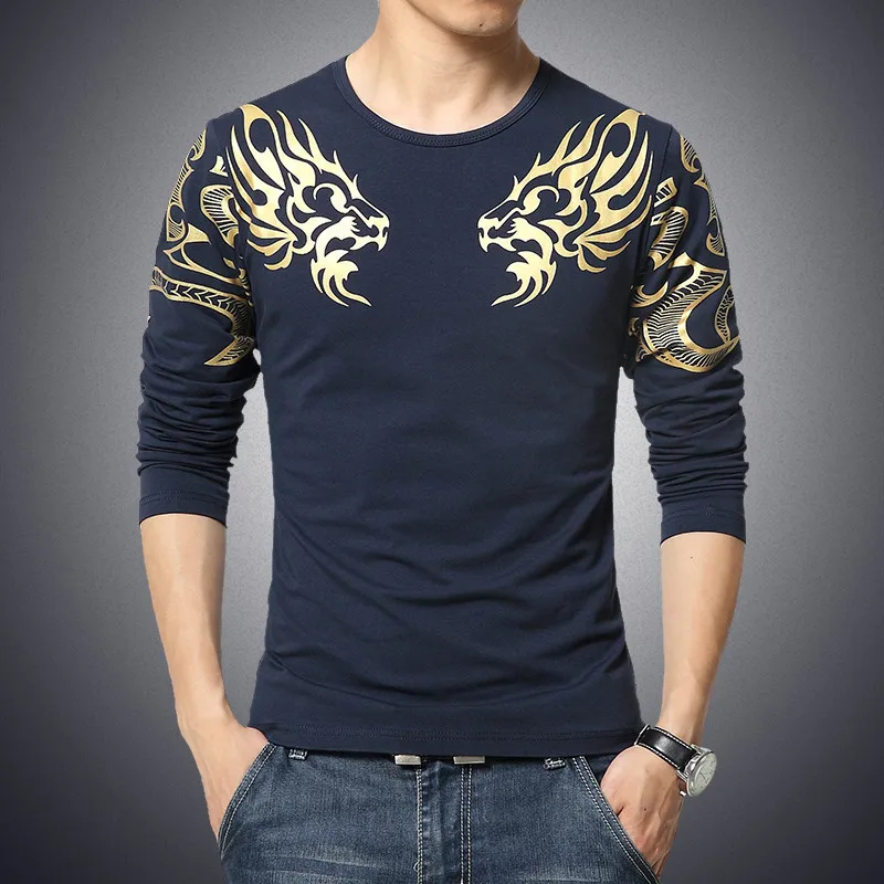 2017 Autumn new high-end men's brand t-shirt fashion Slim Dragon printing atmosphere t shirt Plus size long-sleeved t shirt men