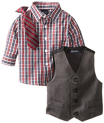 Nautica Baby Boys' Heather Herringbone Vest Set, Dark Grey, 12 Months