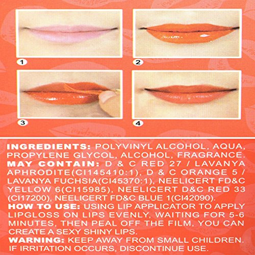 - Allow to Dry 5 Minutes, Then peel off for a lasting Stain of Color !! Fruit Scented Beautiful Long Lasting Lip Tattoo Paint Gloss Set !! How to Use : Using Lip Applicator to apply Lipgloss on Lips Evenly, Waiting for 5-6 Mins, Then Peel Off the Film, You can Create a Sexy Shiny Lips !!