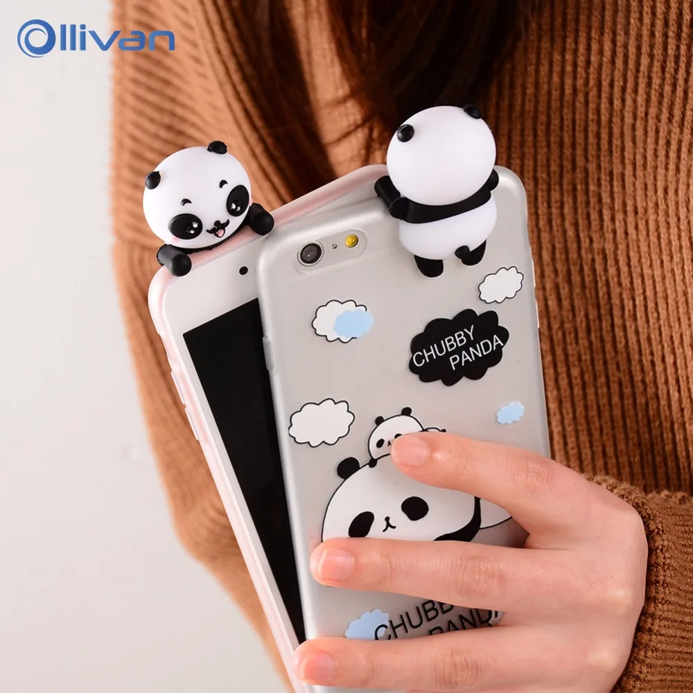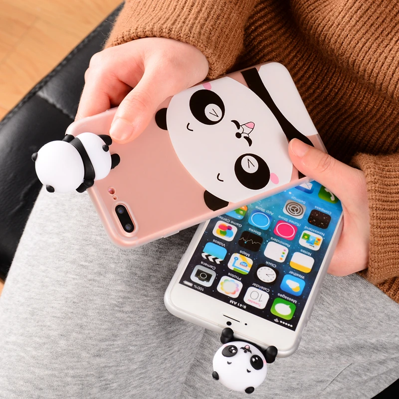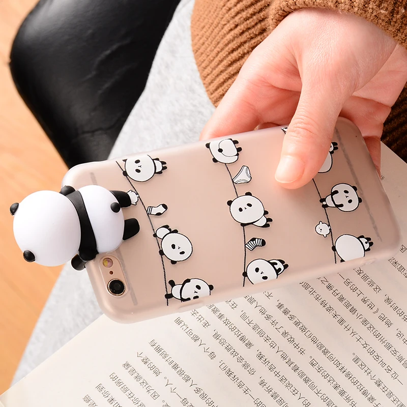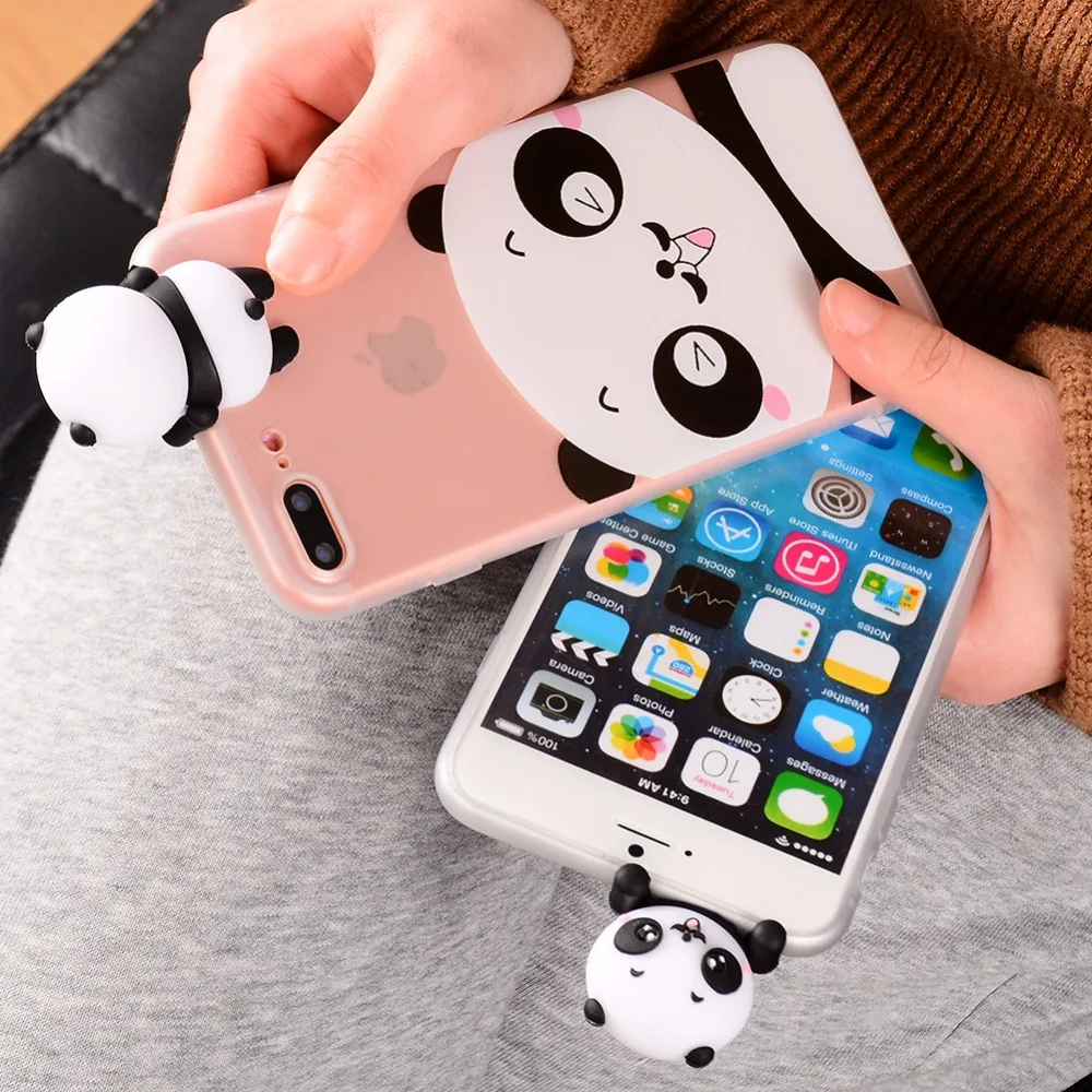 mobile phone covers:3D Cute panda transparent case for iphone 7 8 X case