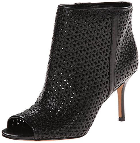 - Feature : Peep-toe bootie in allover floral cutout motif with solid trims and covered heel / Concealed instep zipper