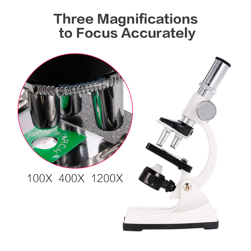 Three magnifications: 100X 400X 1200X to focus accurately