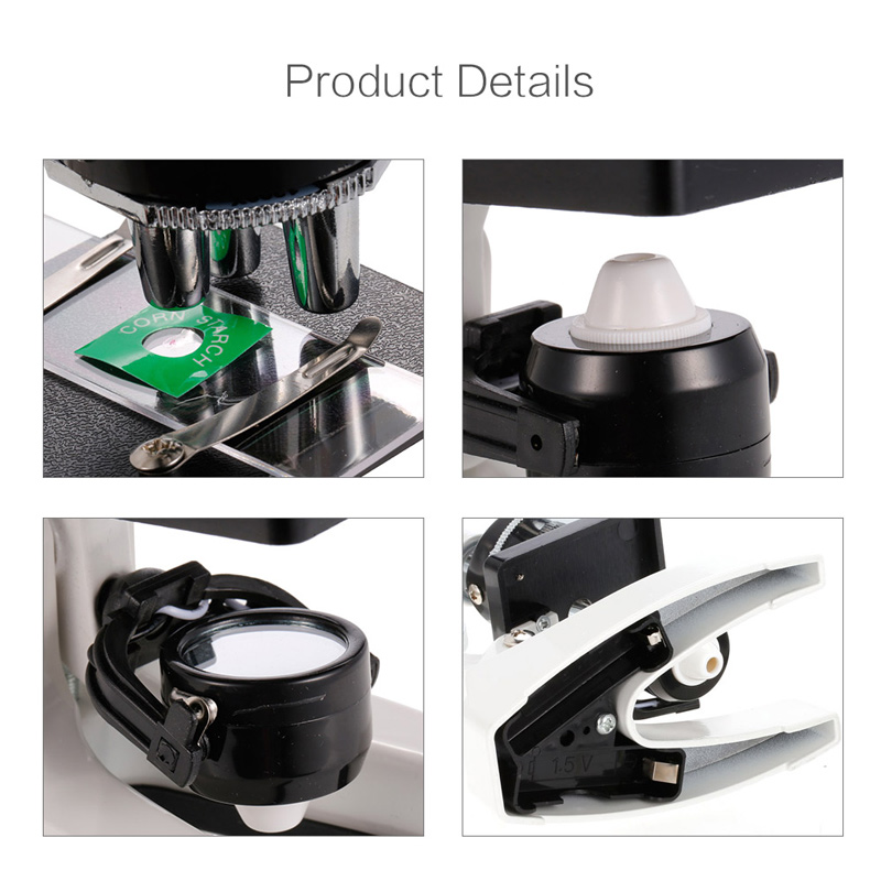 TD-SH1200 Educational Science Biological Metal Microscope Toy with LED Light Mirror 100X 400X 1200X Magnification for Kids