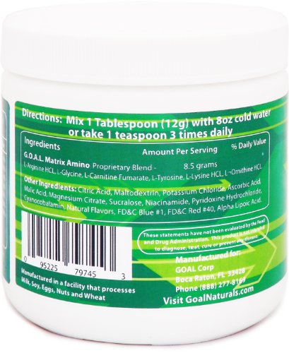 - Title : GOAL - G.O.A.L. MATRIX Amino Acids Complex Powder Fruit Punch - Best NO2 Supplement Powder L-Glycine L-Ornithine L-Arginine L-Lysine Combination Anti-Aging Blend - Nitric Oxide Boosters for Men and Women