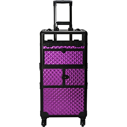SUNRISE Nail Case on Wheels 2 in 1 I31064 Professional Organizer, 54 Bottle Capacity, 6 Trays, 4 Wheel Spinner, Locking with Mirror and Shoulder Strap, Purple Diamond