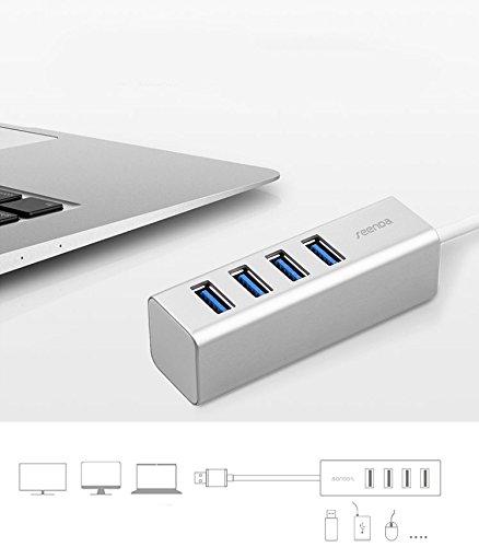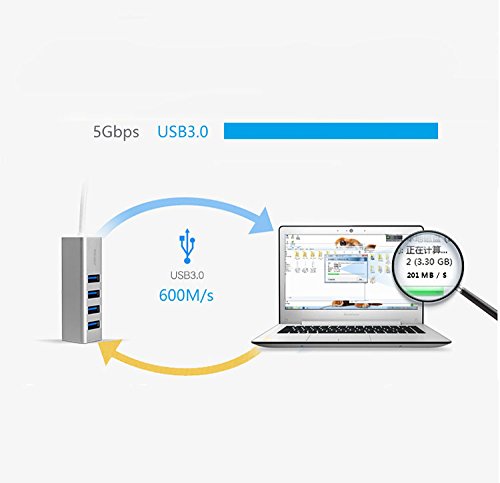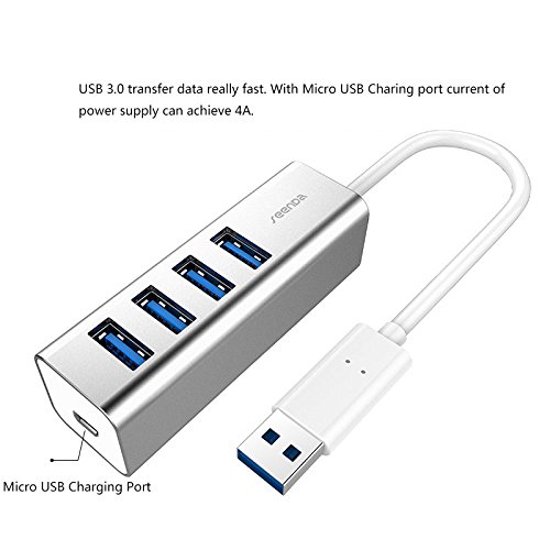 Huluwa USB Hub, Super Speed 4-Port USB 3.0 Hub/Cable, USB 3.0 Hub With Micro USB Charging Port 4 USB Ports Deconcentrator for Laptop Desktop PC, Aluminium case, Cord Length 11.8"