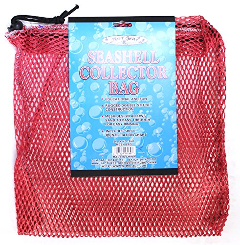 -. Brand : SurfGear -. Feature : Rugged Double Stitch Construction / Mesh Design allows sand to pass through for easy rinsing / Includes Shell Identification Chart / Also great as a small beach or tote bag / Fully Collapse-able- Can fit in your pocket when empty! -. ProductGroup : Apparel -. ProductTypeName : LUGGAGE -. Title : Mesh Seashell Collection Bag (12 inches x 12 inches) with Shell Identification Guide