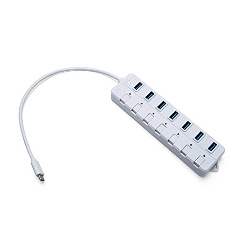 High Speed USB 3.1 Type-C to 7 Port USB 3.0 Hub Adapter Connector with Individual Switchs for PC Laptop Tablet Macbook (White)