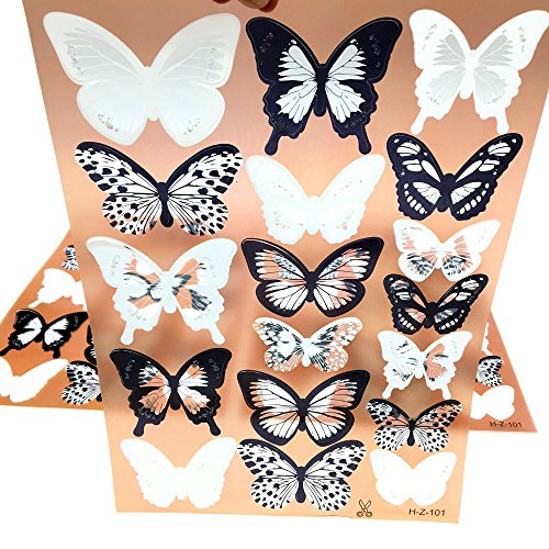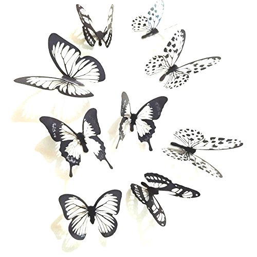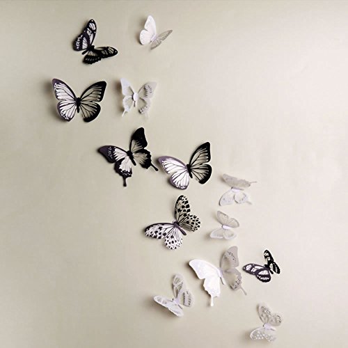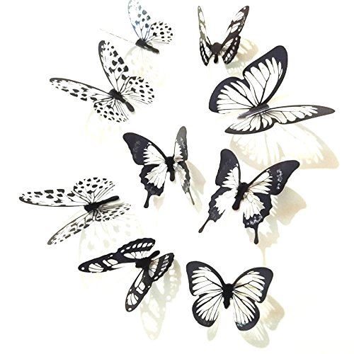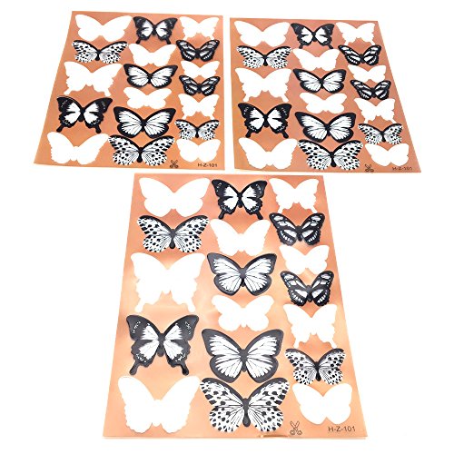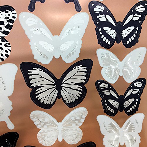 HUELE 54PCS Black&White 3D Butterfly Wall Stickers with Adhesive Art Decal Satin Paper Butterflies Home DIY Decor Removable Sticker