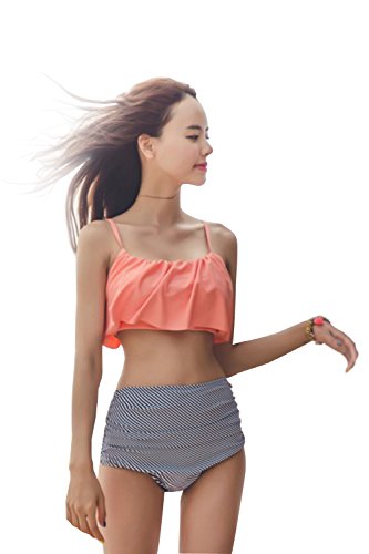 -. Title : レディース 水着 タンキニ ハイウエスト フィットネス オフショルダー ビキニ 温泉 ショートパンツ 体型カバー 2点セット セクシー オレンジ 可愛い