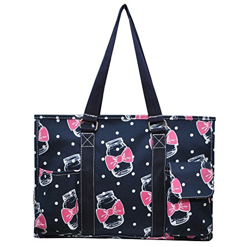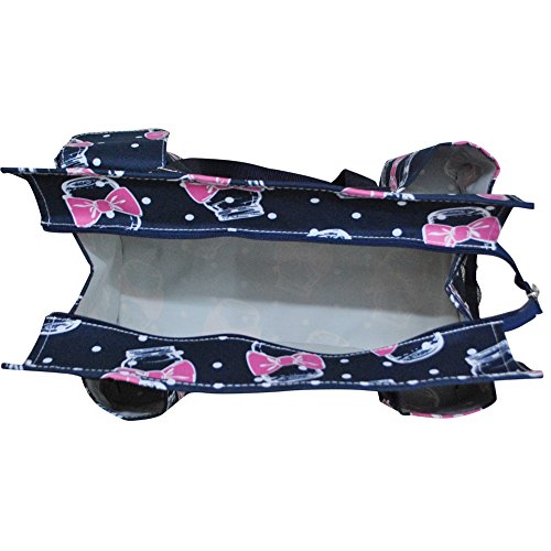 Product Description Double Canvas Handles for easy grip. Handle Drop 9½". Perfect for organizing and taking all the essentials anywhere with: 3 open pockets, 1 Velcro closure pocket and 2 side net pockets. Easy to clean with the Wipe clean interior, and not to bulky with Dimensions of 15½"(L)x 10"(h)x 6"(w) 0