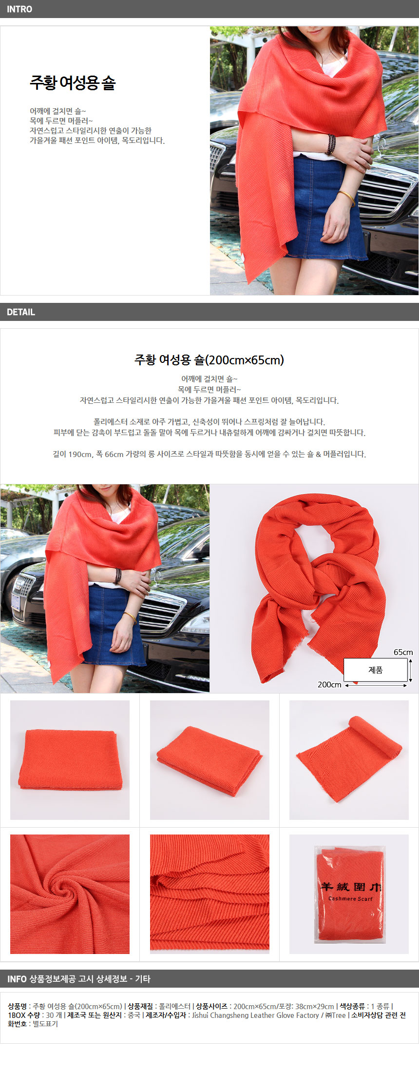 Winter women's shawl 190cm × 66cm orange muffler shawl fashion item