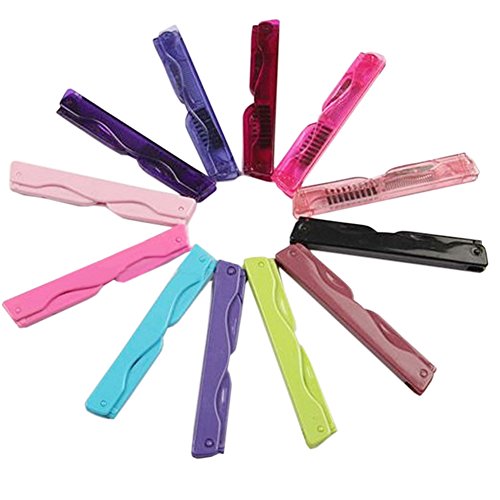 Olpchee 3pcs 2-in-1 Foldable Eyelash Comb & Eyebrow Brush with Metal Teeth Professional Makeup Tool for Define Lash & Brow, Random Color