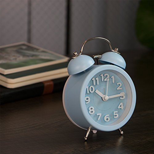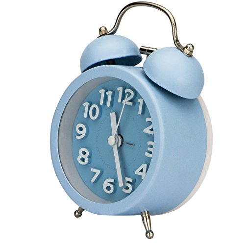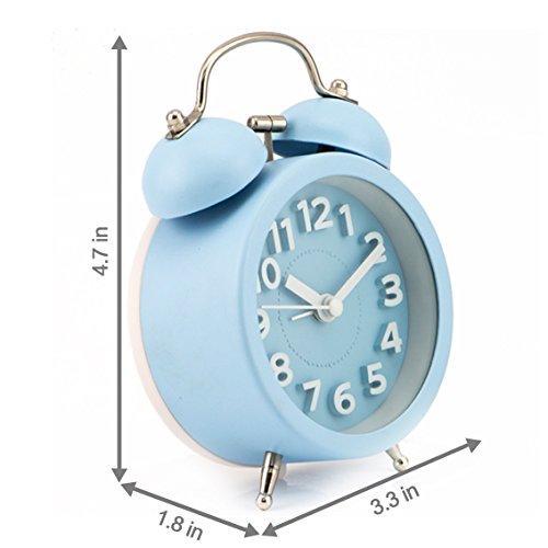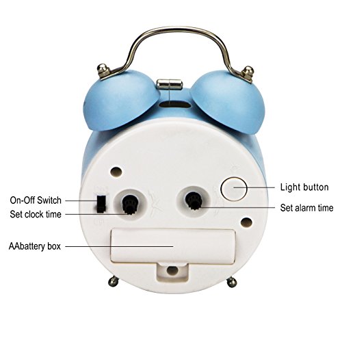 Studio : PILIFE Publisher : PILIFE Binding : Kitchen Product Description Note:The new version has been improved to fix the problem of unsteadiness. please feel free to buy! Product Features: * Retro style takes you back to 80's. * Easy setting perfect for kids and seniors. * Non-ticking, completely silent, ideal for those who need complete silence to fall asleep. * Loud alarm ringing for people who are heavy sleepers. Night light is perfect at night. Specifications: * Weight: 0.21 kg * Type: Twin Bell Alarm Clocks * Nightlight: Press Light Button * Function: Alarm and Night Light * Material: High Quality Stainless Metal * Movement: Smooth Sweeping Quartz * Powered by: 1x AA Battery (not included) * Product Dimensions: 3.3" Diameter;4.7" Tall; Package: 1x Silent Twin Bell Alarm Clock Noted: 1. The two buttons to set time and alarm are designed that way. Please don't mistake the special design for the sign that they're broken or of poor quality. 2. Please use 1 AA carbon zinc battery only (alkaline battery or rechargeable battery which may have influence on the life span of clock movement, as well as the accuracy of the time). 3. There are slight difference between the picture and the real item caused by light brightness. 0