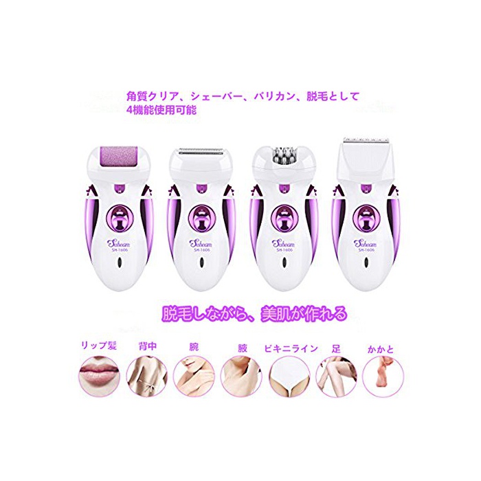 1대 4역할:탈모,쉐이버,각질 리무버,바리 캔이라고 하면 하는 4개의 기능이 어느(있는) 다기능 탈모기입니다.헤드를 교환 하는 것만으로,전신 탈모,쓸모 없는 털 케어,발뒤꿈치 각질 케어,족탈모,등 쉐이버 등도 대응 성과,매우 편리한 아이템입니다!