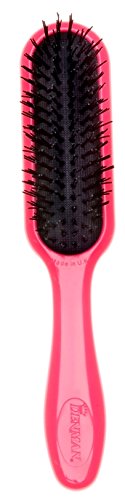 A Closer Look: Denman Tangle Tamer is a combination of air-cushioned pad and super soft nylon bristles to detangle hair. The cushion pads are gentle on scalp as they follow the contour of head. The bristles avoid tugging the hair, while brushing. It comes in hot pink shade.