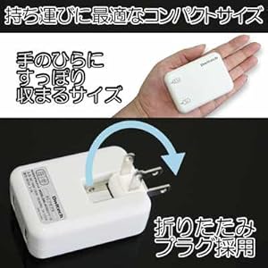 てのひらに収まるサイズで持ち運びしやすい。 コンセントプラグを折りたためるから邪魔にならない。