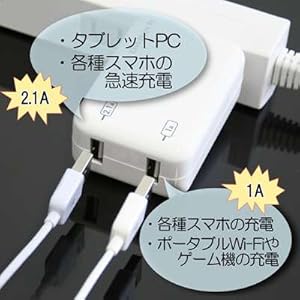 スマートフォンとタブレットPC等のの2台持ちに最適。高出力AC充電器