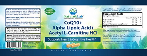 Nature's Lab COQ10 Plus Alpha Lipoic Acid Plus Acetyl L-carnitine HCL Vegetarian Capsules, 120 Count