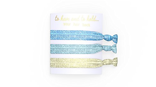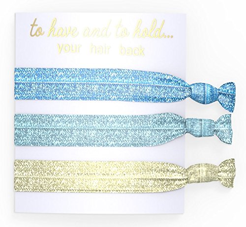 TOP OFF bridesmaid dresses with these trendy hair ties. Each trio features coordinating colors with sparkling glitter accents. These are thoughtful, unique additions to bridal shower swag bags.