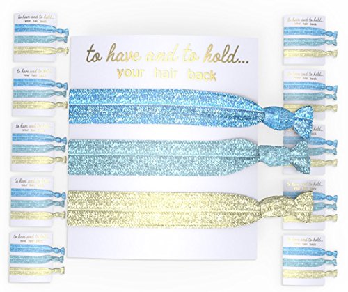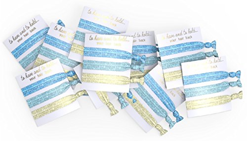 Bridesmaid Bachelorette Party Hair Ties in Turquoise Blue and Gold (10 Pack)