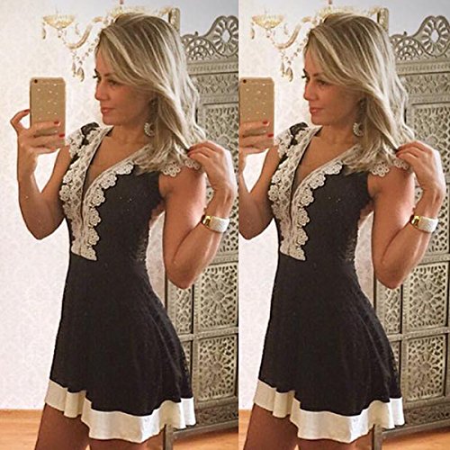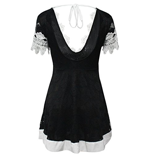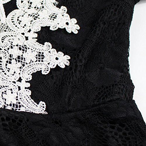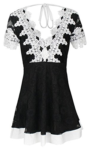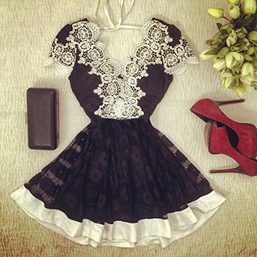 Title : FANCYINN Women V-neck Floral Lace Halter Neck Cocktail Party Mini Dress Black L