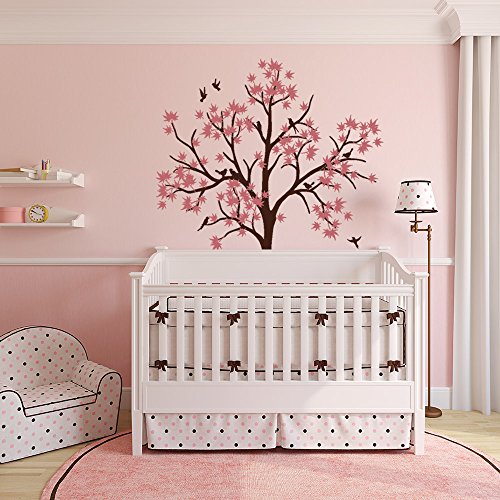 N.SunForest Large Maple Tree Wall Decals Nursery Decor Forest Vinyl Sticker with Bird for Bedroom or Any Room