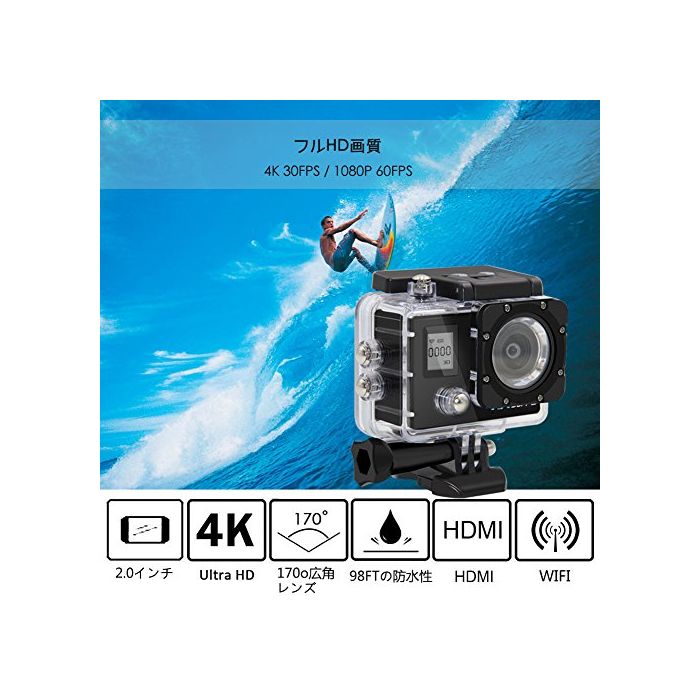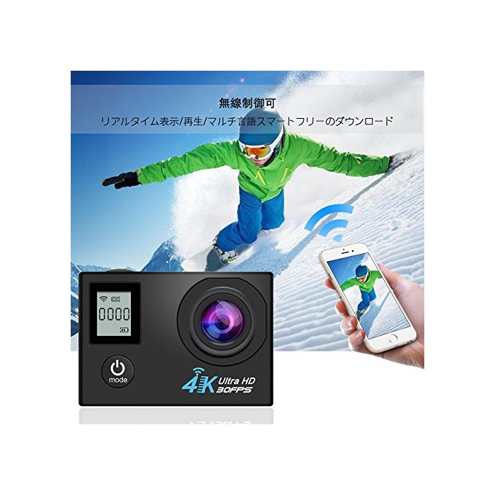 원본상품명: ZOTO アクションカメラ 30m防水 1200万素 2.0インチ リモコン付き 4K WIFI搭載 二つ液晶ディスプレイ HD 170度角レンズ スポツカメラ (1年保付)