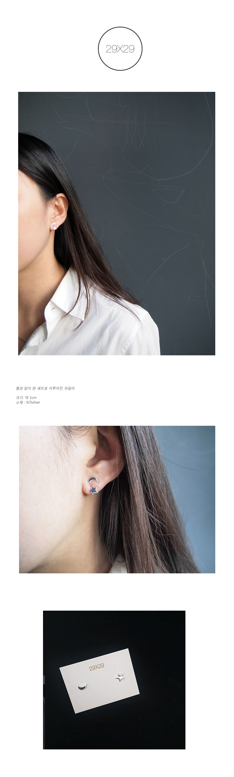 별과 달이 한 세트인 미니 귀걸이입니다.