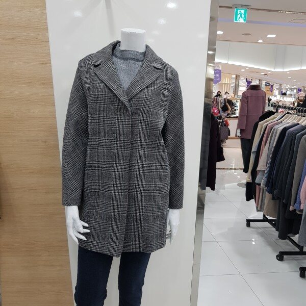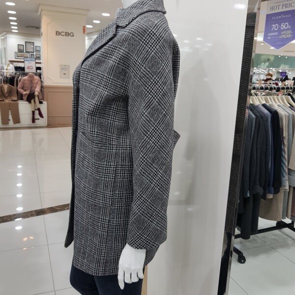 어깨 절개선이 없는 A라인 체크자켓으로 앞 포켓으로 포인트를 주어 밋멋하지 않으며 루즈핏 자켓입니다