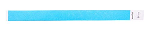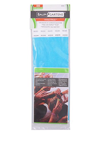 -. Feature : Wristbands are perfect for admission, bars, identifying visitors, festivals, schools and sports / Waterproof and made with DuPont (tm) Tyvek(r) / Sequentially numbered and perforated to easily separate and attach to wrist / Color: blue / Size: 10" x 0.75", 100 Wristbands per pack (Includes 6 packs of bands)