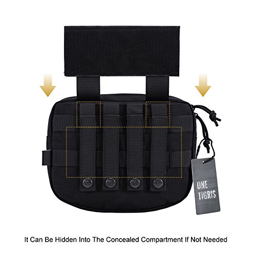 -. Binding : Misc. -. Brand : OneTigris -. Department : unisex-adult -. Feature : Durable: Made of red 1000D nylon material with sturdy double stitching; Also with quality UTX Brass Snap Buttons / Dimensions: 9"W X 7"H X 2"D (23cm x 18cm x 5cm); expandable, yet still compact / Multi-purpose: Compatible with any MOLLE tactical gear. Unfolded conceal hook backing for easy attaches to any tactical vest's loop surface / EDC pouch with MOLLE webbing in the front for attachment. With 2 side straps in the front of the small pouch which allow you to add shoulder strap as shoulder bag / With a drainage hole at the bottom to keep your gears as dry as possible after water / rain get into the pouch -. IsAutographed : 0 -. IsMemorabilia : 0 -. Label : OneTigris -. Manufacturer : OneTigris -. MPN : TG-GJB10-BK -. PackageQuantity : 1 -. PartNumber : TG-GJB10-BK -. ProductGroup : Sports -. ProductTypeName : SPORTING_GOODS -. Publisher : OneTigris -. Size : 9"W X 7"H X 2"D (23cm x 18cm x 5cm) -. Studio : OneTigris -. Title : OneTigris Compact Storage Pouch, Multi-purpose MOLLE Tactical Accessory Pouch for Vest