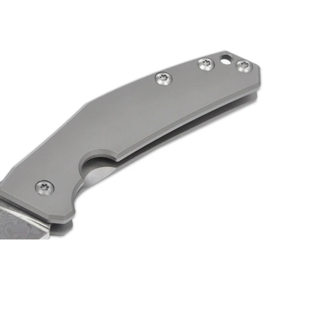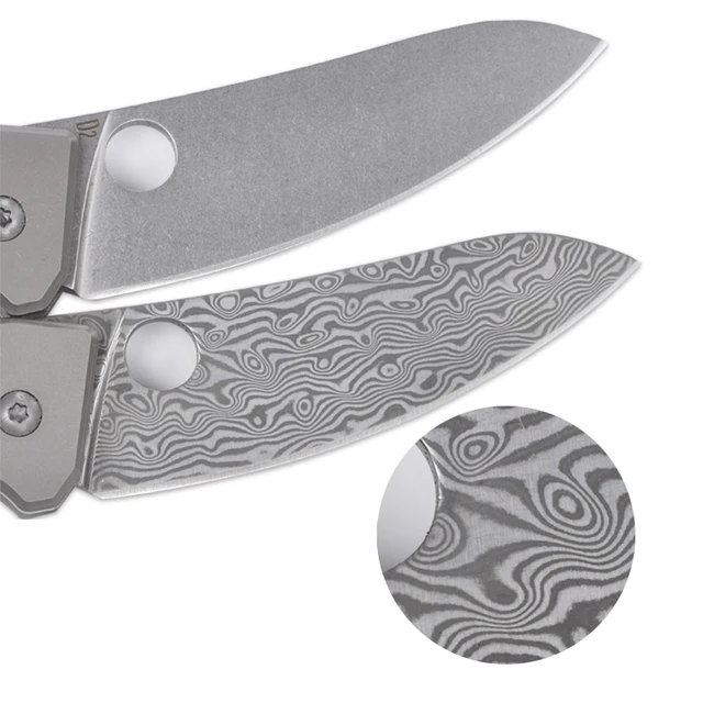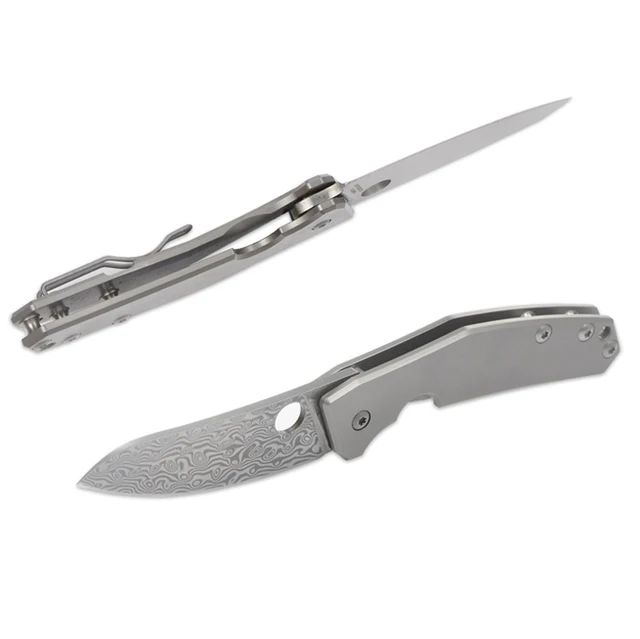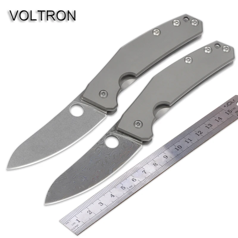 VOLTRON 전술 접는 나이프 높은 품질 D2 다마스커스 블레이드 티타늄 합금 핸들 다기능 생존 캠핑 사냥 칼 길이: 198 미리메터 블레이드 길이: 85 미리메터 블레이드 두께: 3 미리메터 블레이드 재질: D2 스틸/다마스커스 무게: 108 그램 경도: 58-59HRC 핸들 재질: 티타늄 합금 포장: 상자