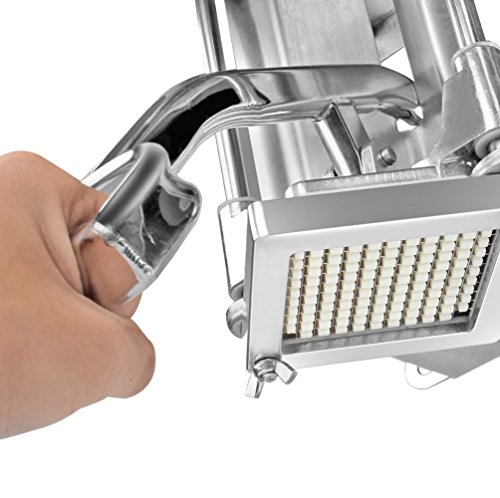- Feature : Heavy-duty Stainless steel commercial grade, restaurant quality potato slicer / Reliable and easy to clean; Minor assembly required; You can enjoy restaurant style French fries in your own kitchen without all the slicing and dicing / Can be mounted on wall or on table Rust-proof pusher block, handle and frame / Wash the unit and blade before using; Keep unit clean after using for longer life / Ideal for commercial or home use. Also it is perfect for other root vegetable such as turnip,yam, sweet potato, carrot, eggplant, lettuce etc and fruit such as apple or orange