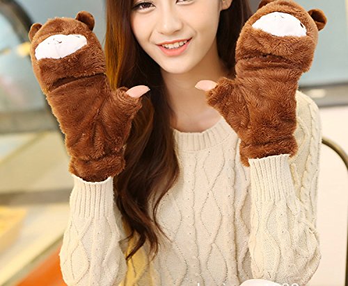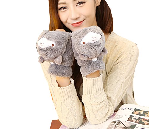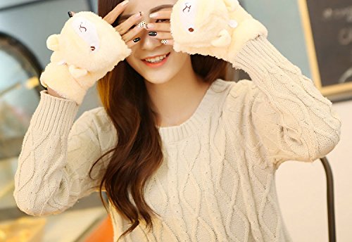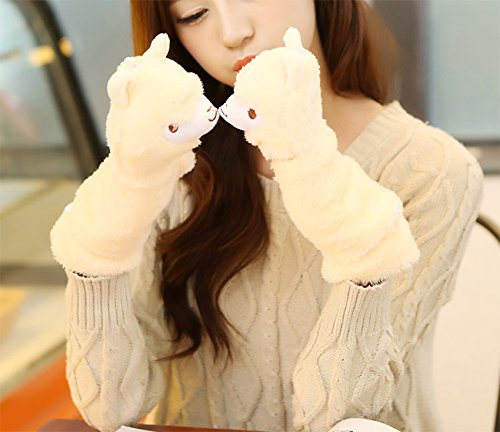 (e-youth)/Accessories/Cold Weather Accessories/DIRECT FROM USA/Girls Cute Alpaca Fluffy Warm Soft Winter Fingerless Gloves Women Mitten