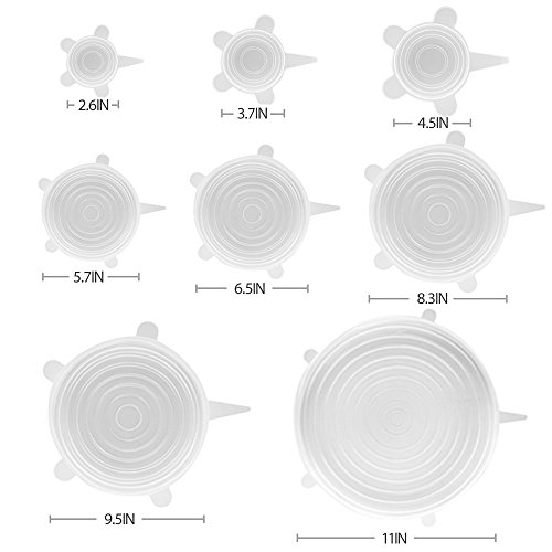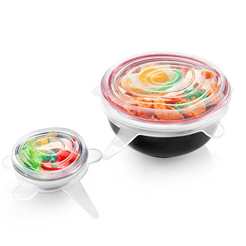 Versatile & food safe reusable storage lids: FDA approved and BPA Free certified made from high quality, food grade silicone. Use instead of saran wrap to cover almost any dish, cup, bowl or plate with air tight seal spill stopper