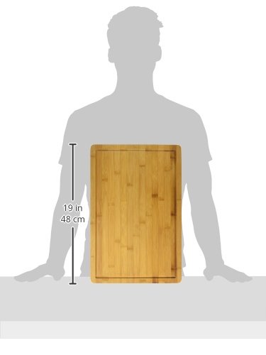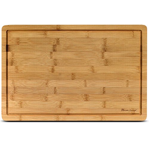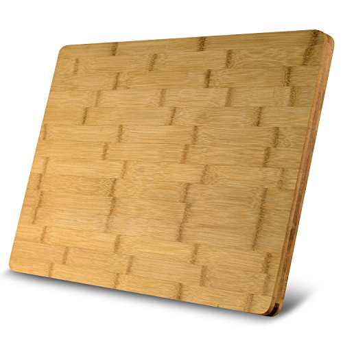 - EXTRA LARGE & DURABLE - Measures 18" x 12" x ¾" in and weighs 3.1 lbs providing space for heavy duty vegetable chopping, slicing fruits, and cutting meat. High quality bamboo resists knife scaring and warping