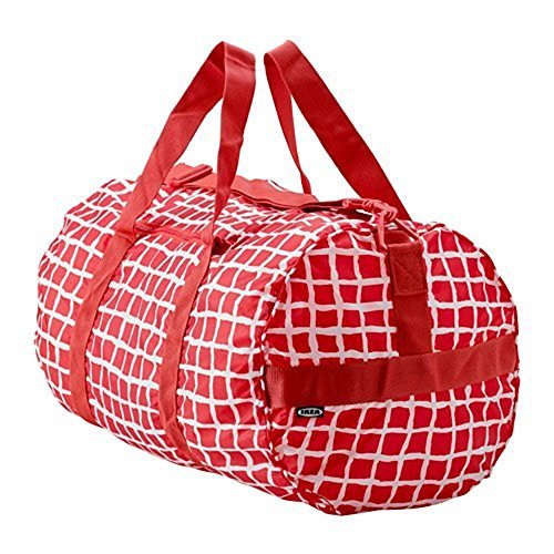 -. Brand : Ikea -. Feature : Easy to keep on hand since it folds into its own pocket and fits in your suitcase or backpack. / The shoulder strap is adjustable for a perfect fit, and can also be removed if you prefer to carry the bag in your hand. / Easy to keep clean since you can wash it in the washing machine. -. ProductGroup : Apparel -. ProductTypeName : APPAREL -. Title : Ikea Knalla Sports bag 100% Polyester 21 ¼ " x 12 ⅝ " Machine Washable