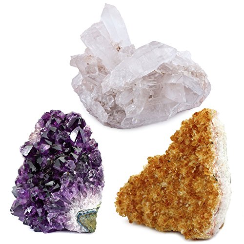 - 3-piece specimen starter set: Whether you are a hobbyist or are just dipping your feet into the world of crystals, this combination of raw natural crystals is the perfect start. The combo set includes a natural amethyst cluster, a natural citrine cluster, and a natural crystal quartz cluster. Great for cabbing, cutting, lapidary, tumbling, polishing, home decor purposes, or for exploring reiki and crystal healing.