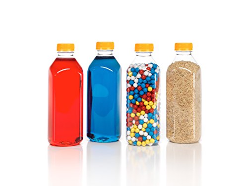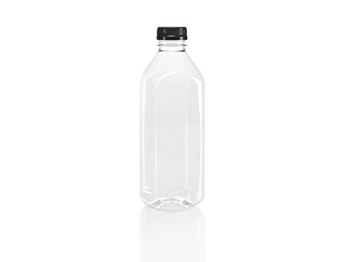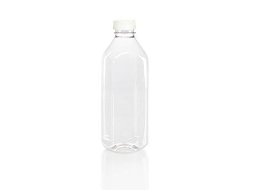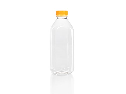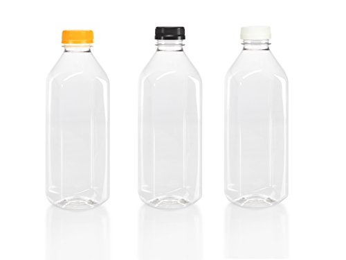(6) 32 oz. Clear Food Grade Plastic Juice Bottles with Tamper Evident Caps