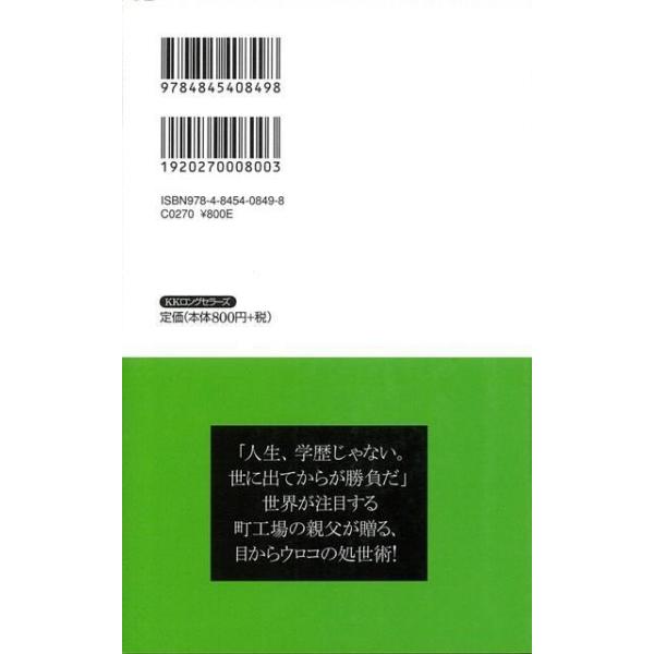 【商品説明】 定価(税込み):864円 値引き:5% OFF 世の中、頭つかって一生懸命やれば何でも思い通りになる。「人生、学歴じゃない。世に出てからが勝負だ」世界が注目する町工場の親父が贈る、目からウロコの処世術! バーゲンブック 新品 特価 格安 ビジネス 経済 自己啓発 自己 啓発 |
