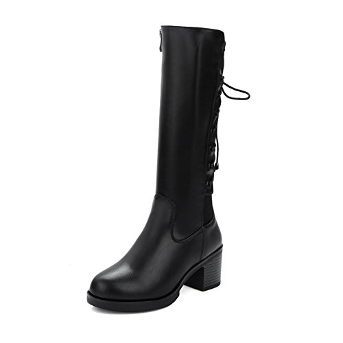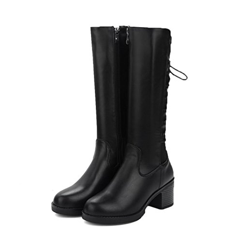 (BalaMasa)/Women's/Boots/DIRECT FROM USA/BalaMasa Womens Kitten-Heels Zipper Mid-Calf Solid Urethane Boots ABL09676
