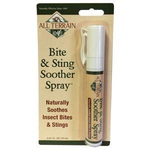 ReleaseDate : 2016-07-30 Studio : Mugs Funny Publisher : Mugs Funny Binding : Health and Beauty Product Description Bite Sting Soother Spray Pen by All Terrain 0. 44 oz. Spray Bite Sting Soother Spray Pen 0. 44 oz. Spray Temporarily protects and helps to relieve minor skin irritations and itching due to insect bites and stings Convenient travel size spray so affected area isn't touched Active Ingredients Allantoin 0. 5 Inactive Ingredients Water Xanthan Gum Vegetable Glycerine Colloidal Oatmeal USP Cetearyl Alcohol Glyceryl Stearate Butyrospermum Parkii (Shea Butter) Capric Caprylic Triglycerides Dow Corning 245 Fluid Zinc Oxide Kaolin Clay Topical Starch (Corn Starch) Optiphen (Phenoxyethanol Caprylyl Glycol) Alpha Bisabolol Barbadensis (Aloe Vera) Leaf Extract Eucalyptus Globulus Leaf Oil Melaleuca Alternifolia (Tea Tree) Leaf Oil Neem Oil Warnings Keep out of reach of children. As with all dietary supplements consult your healthcare professional before use. See product label for more information. 0