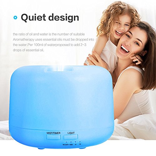 Aroma Essential Oil Diffuser - Mist Beauty Spray Aromatherapy , Silent Essential Oil Humidifier / 4 Timer Settings/ 7 LED Color Changing Lamps, Auto Shut-off Function for Home and Office (500 ML)