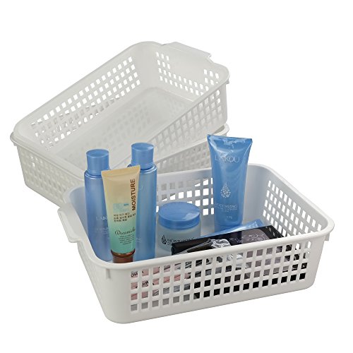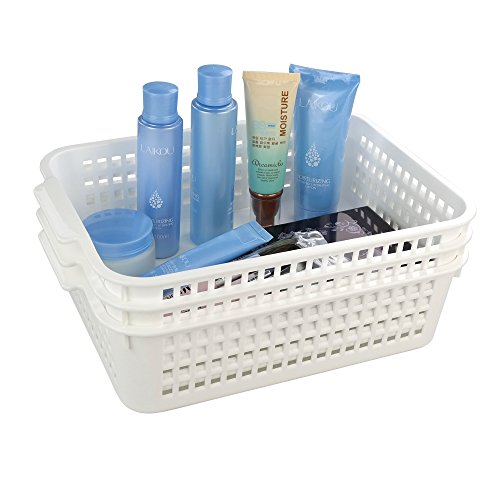 Fiaze 3-Pack Medium Plastic Storage Baskets / Trays Organizer, White