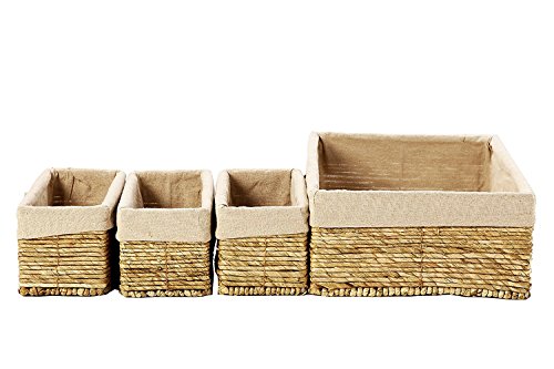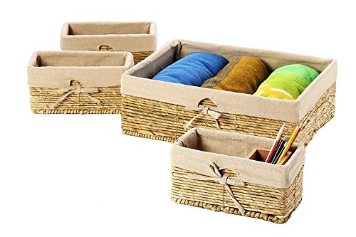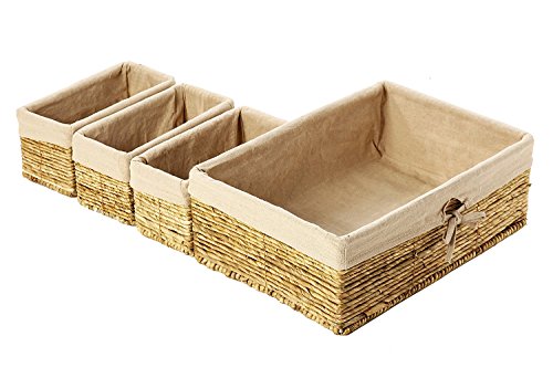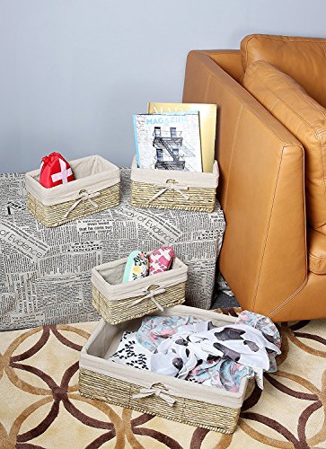 Set of 4 Storage Baskets – Nesting Storage Basket Set in 2 Sizes - Decorative Wicker Corn Rope Home Organizer Bins, 1 Large Size Basket with 3 Smaller Storage...