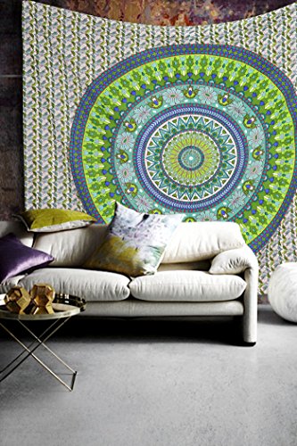 TRADITIONAL ORGANIC COTTON BEDSPREAD, PSYCHEDELIC BEACH THROW MANDALA TAPESTRIES, BOHEMIAN URBAN BEACH COVERLET, ETHNIC DECORATIVE WALL DECOR ART, LARGE COLLEGE DORM PICNIC BEACH SHEET
