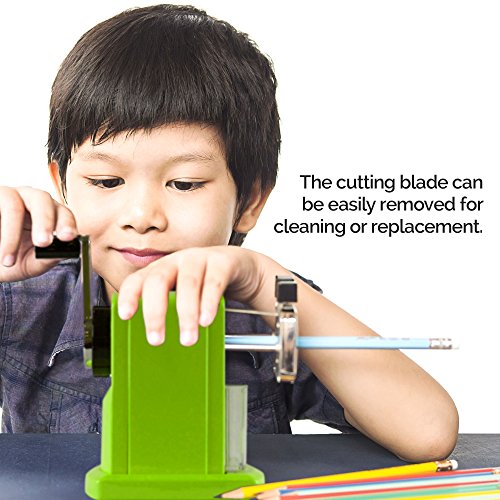 THE COMPACT QUIET DESIGN makes this the ideal sharpener for classroom and office settings. The helical blade is quiet and easily removed for cleaning. A great tool for your arts and crafts shelf (or art table). Artists who enjoy drawing, sketching, or even adult coloring books will appreciate the fine point it produces; The Sharpener works with colored pencils and drawing pencils with softer leads. Colored pencils do not damage the cutting blade.